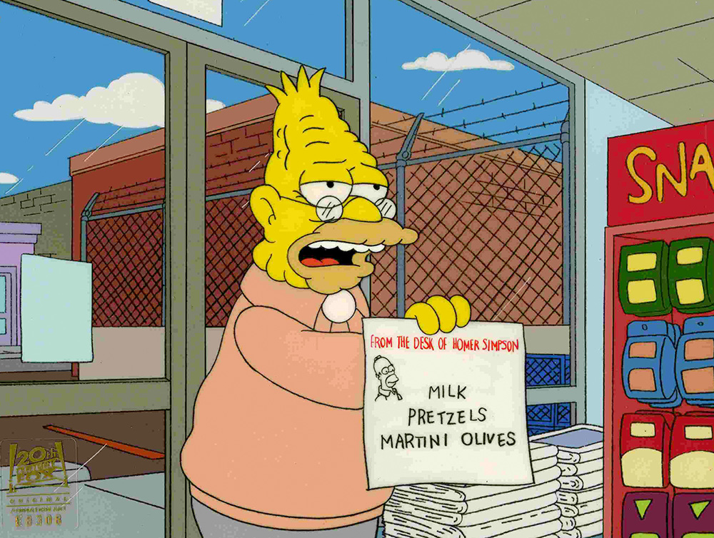 Diese großartige Szene spielt im Kwik-E-Mart. Grampa und seine älteren Freunde werden mit einer Gruppe älterer hispanischer Herren konfrontiert, die sie zu einem Todesrennen herausfordert. In diesem Moment erscheint Homer als Großvaters Gewissen. Homer: „Und noch etwas: Keine Todesrennen!“