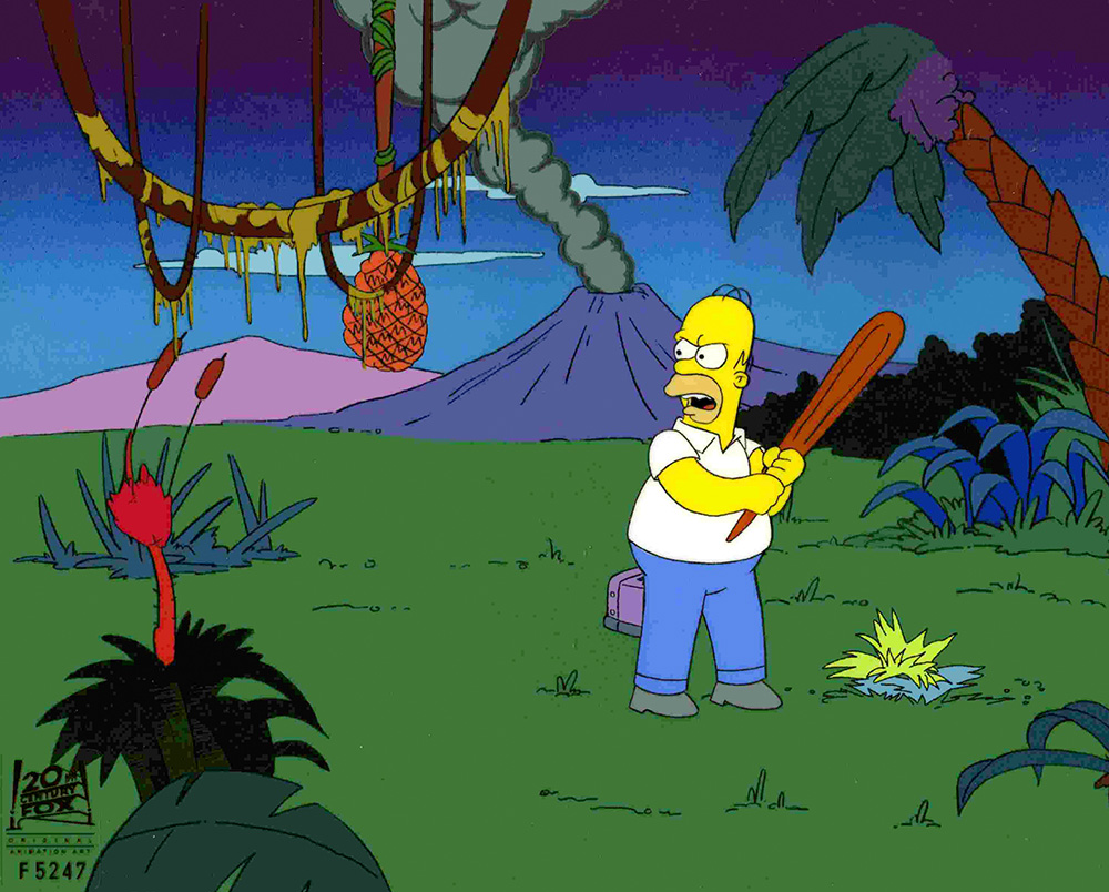 Geniales Cel aus der beliebten Serie Treehouse of Horror. Volle Aktion von Marge, Lisa und Bart. Das Cel besteht aus drei Folien mit jeweils einer der drei Firguren. Animation pur!